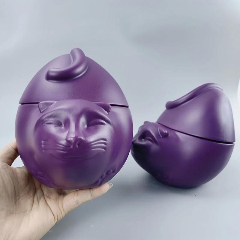 Meet our new Plastic Cat Shape Design Jar for Cat Food – a game - changer in pet product packaging! Shaped like an adorable cat, it features a sleek, egg - like silhouette with a 3D cat face and tail. Crafted from eco - friendly HDPE, available in charming purple (or customizable colors), this jar isn't just packaging – it's a conversation starter.