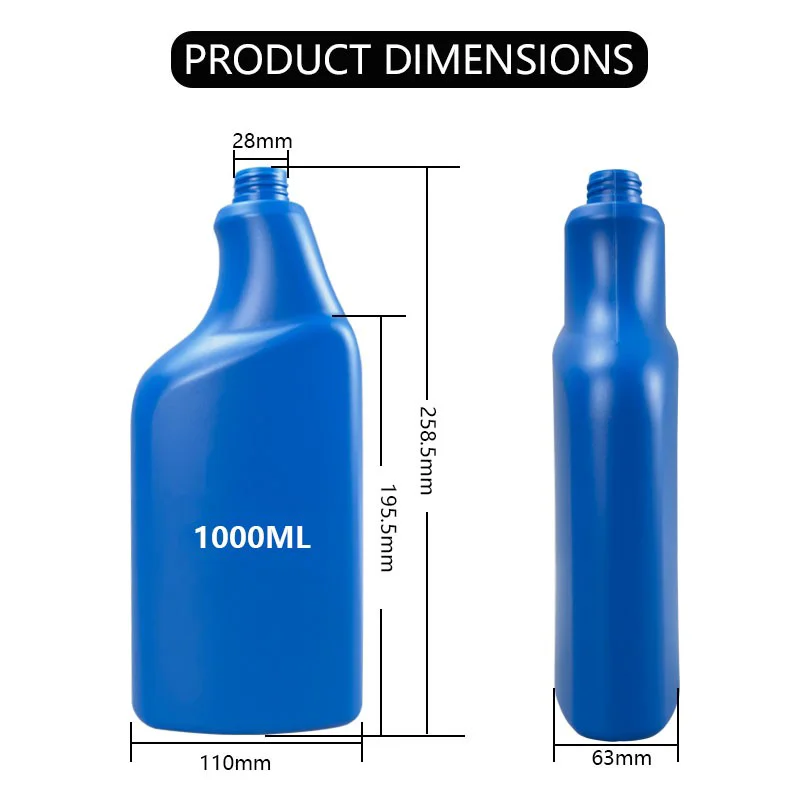 This product is a 1-liter plastic spray bottle made of high-density HDPE material. Its outstanding corrosion resistance enables it to hold various chemical liquids, cleaning agents and disinfectants, ensuring that the bottle does not deform or leak. It is an ideal choice for industrial chemical, household and agricultural cleaning applications.