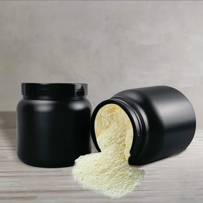 Material:HDPE is usually the preferred material for protein powder and food cans